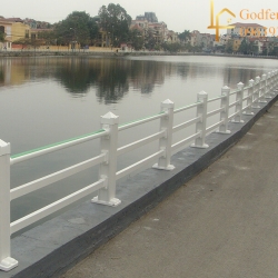 Nhựa UPVC 121x121x2 mm bao gồm mũ chụp đỉnh cột và mũ chụp chân đế cột; lõi thép hộp mạ kẽm 100x100x2 mm hàn với bản mã 220x100x6mm, vít nở kết nối với nền bê tông M12x100mm.