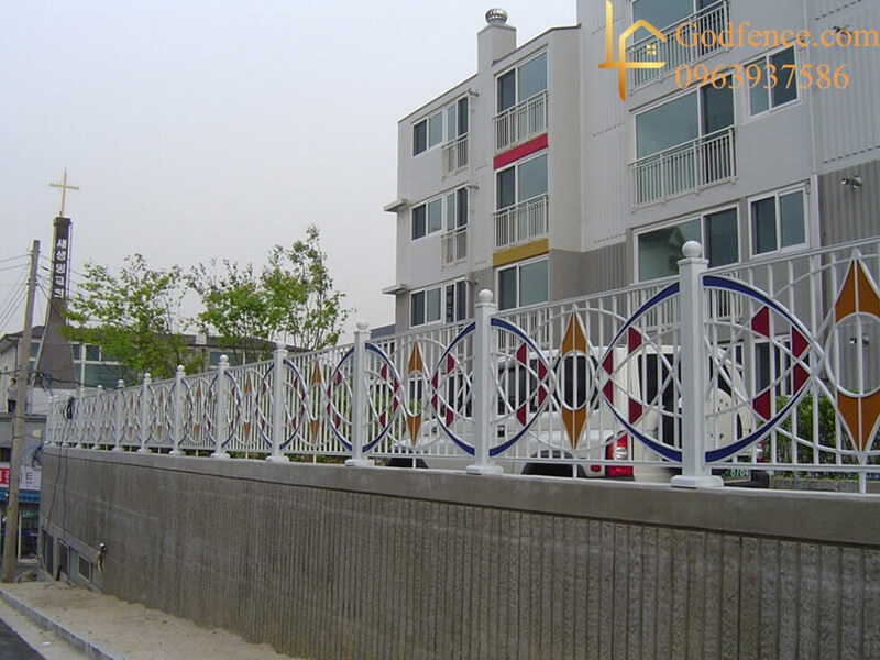 Một mẫu hàng rào đẹp ấn tượng cho trường học hoặc những công trình dành cho trẻ em. Các chi tiết trên hàng rào được sơn với những màu sắc nổi bật và ấn tượng sẽ cho các bé không gian đầy màu sắc và gợi hứng thú.Thông số kỹ thuật: