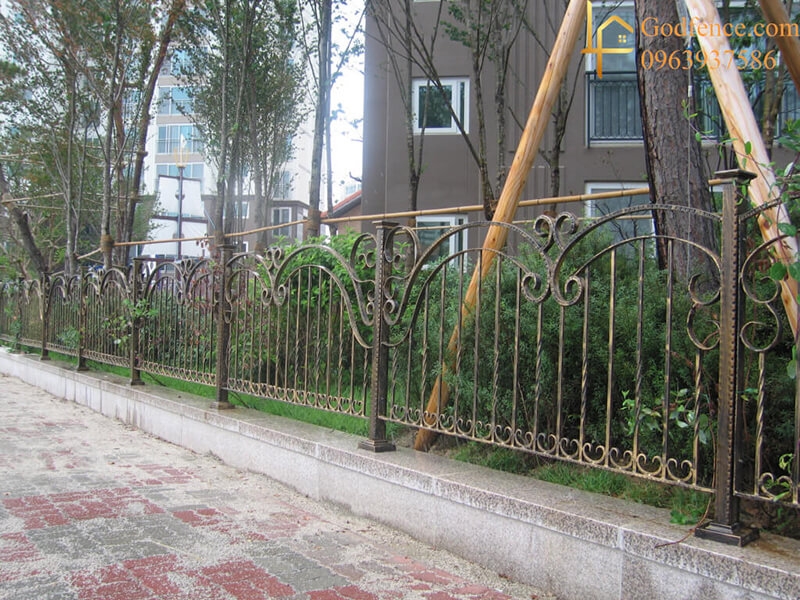 Một mẫu hàng rào cổ điển với các họa tiết sắt uốn làm màu giả cổ sẽ cho bạn một không gian kiến trúc đầy mới mẻ. Nếu bạn đang tìm kiếm một mẫu hàng rào chất lượng cao dành cho khu nhà ở, khu vườn hay hồ điều hòa trong khu dân cư thì đừng bỏ qua mẫu hàng rào này nhé!